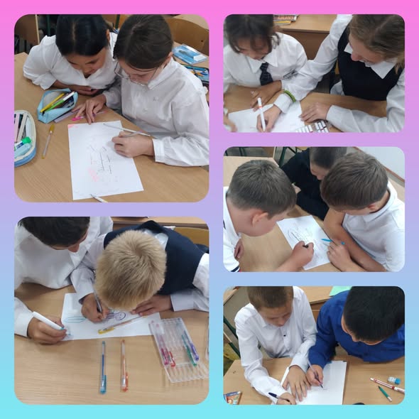 Сабақ барысында балалар ізгілік пен адалдық ұғымдарын бейнелейтін постерлер жасап, сұрақтарға жауап беріп, жақсылық жасау мысалдарын және айналадағы адамдарға құрмет көрсетудің жолдарын талқылады.